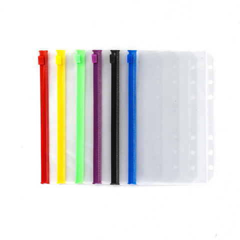 สมุดโน๊ตแผ่นพีวีซีใสมี6รูสำหรับโรงเรียนใช้ในสำนักงานแผ่นด้านในมีซิปอุปกรณ์เครื่องเขียน A5 A7 A6